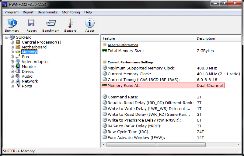 What other hardware is installed in the machine? The motherboard might not support dual channel mode. For more system info download HWiNFO32.