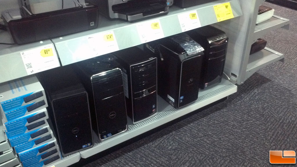 Sure enough on the bottom shelf there were five desktop PCs by ASUS, HP, Dell and Gateway on the bottom shelf. None were hooked up and only two have pricing sheets above them... Guess it's a sign of how desktops are selling.
