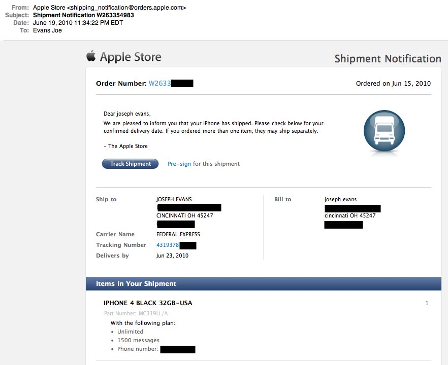The iPhone 4 is beginning to ship and for some, like me, the delivery date on the confirmation email from Apple says "delivery by June 23, 2010. Launch is supposed to occur on the 24th and using the Fed Ex tracking number, Fed Ex shows an expected delivery date of 6/24. If Apple does deliver some early, it may ease the burden on the AT&T servers which will almost surely falter under the demand of 600,000+ trying to activate their phones on launch day. May the tech gods help us all!