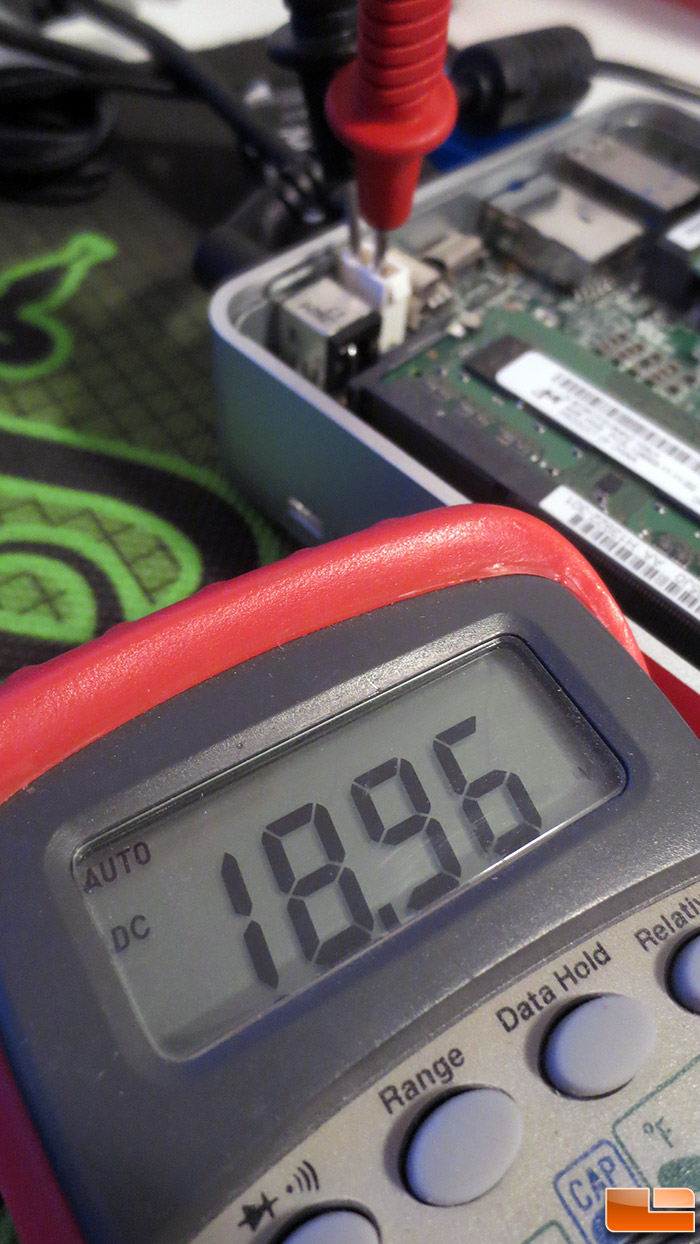 Looks like the internal 2-pin DC power header is feeding out 19V: