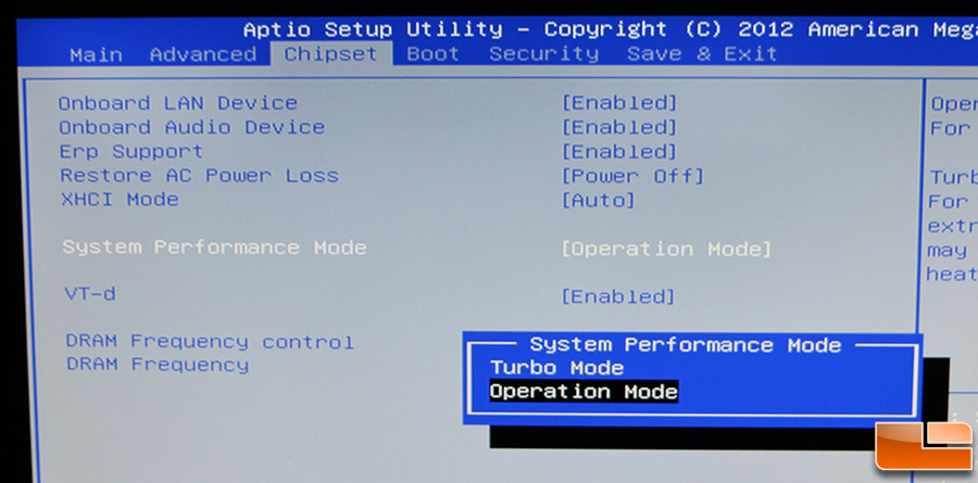 There is also a performance mode setting that has been added under chipset settings. This mode has 'operation' and 'turbo' as the settings. Operational performance mode is the new default setting.