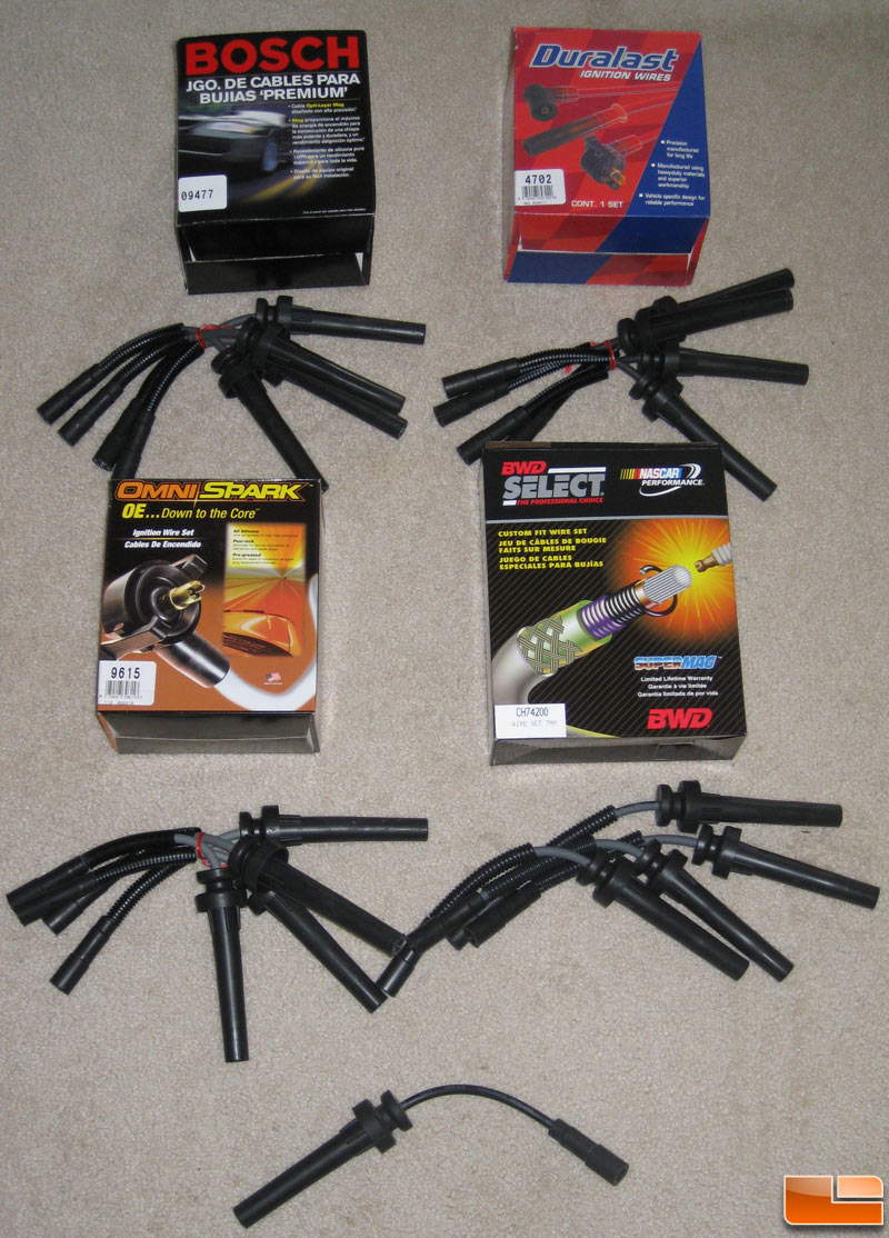 As you can see all of the wires were priced between $30-$34, so you'd think the results would be the same. To be honest it looks like the Bosch, Duralast and OmniSpark plugs are all made by the same company. The boxes are the same dimensions, the instructions in the box were identical on two of them and they were all held together by the same red twist tie... Great, here we go with re-badged wires! Well, they weren't and I found the differences to be amazing! Even the guy at Autozone said I wouldn't find a difference between their Duralast and Bosch brands, but boy was he wrong.
