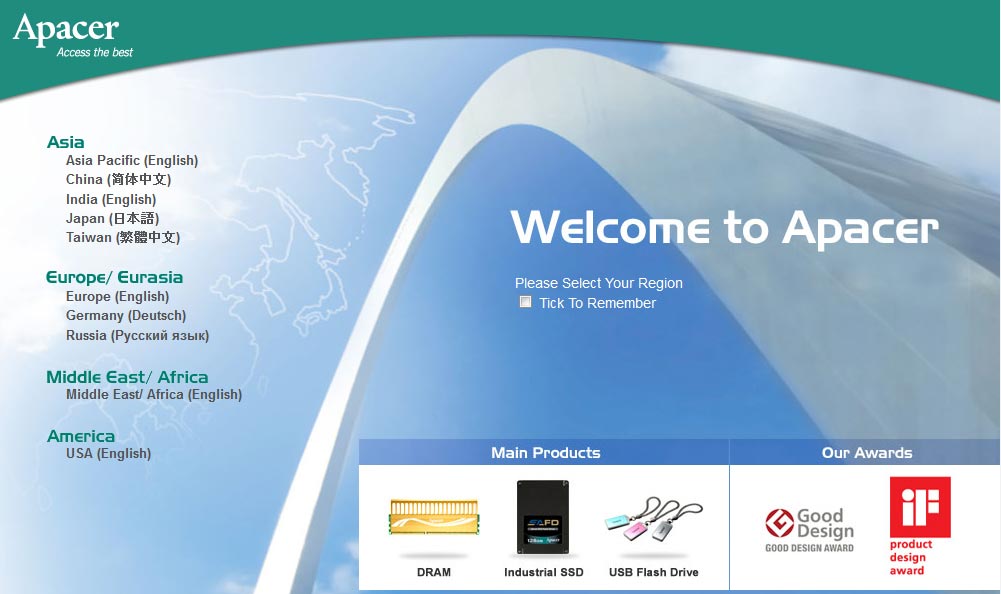 I was checking out the Apacer site this morning and noticed they were using the St. Louis Arch for their landing page background image...