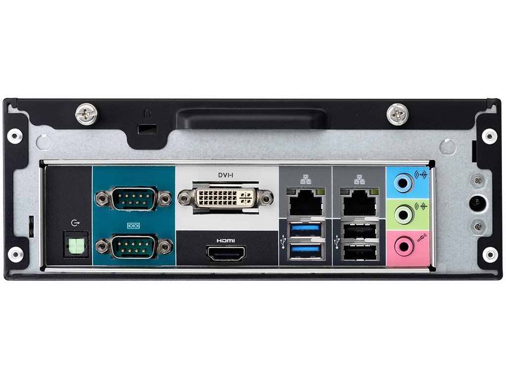 The XH61V has two teaming-capable Gigabit network interfaces, which can be used together to increase transfer performance over the network (load balancing) or to ensure connection reliability (failover). Automation and control applications benefit from the two serial interfaces (1x RS-232, 1x RS-232/422/485) offered by this machine.