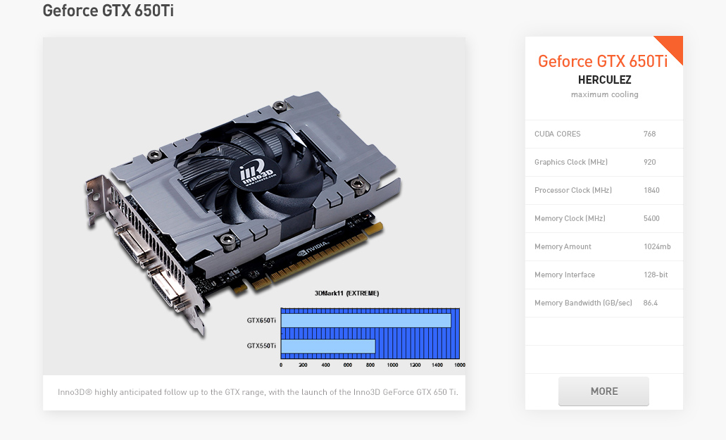 Inno3D® highly anticipated follow up to the GTX range, with the launch of the Inno3D GeForce GTX 650 Ti. Built from NVIDIA’s groundbreaking new Kepler architecture, it delivers truly game-changing performance, providing a smooth, lifelike experience in today’s most demanding titles. The GeForce® GTX 650 Ti graphics card represents the Kepler “sweet spot” for gamers—the ultimate combination of performance, power efficiency, and affordability.