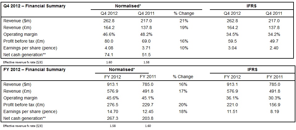 ARM Holdings PLC Reports Results For The Fourth Quarter And Full Year 2012
