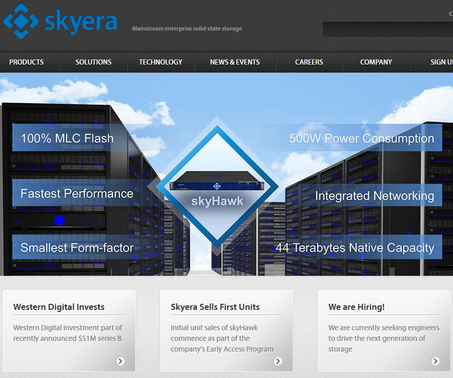 “One of our primary goals in developing strategic relationships with technology innovators in the broader storage ecosystem is to enable customers to develop highly optimized storage solutions that meet their changing data management needs,” said Steve Milligan, president and chief executive officer, Western Digital. “We see companies like Skyera as offering a dramatic improvement over traditional approaches to emerging storage challenges. We will continue to support innovation by collaborating with customers and partners, and investing in companies who are addressing today’s most exciting storage opportunities.”