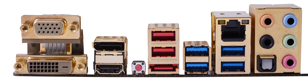 Expansion and connectivity options in the A85F2-A GOLDEN include 7 SATA 6 Gb/s connectors, 6 USB 3.0 ports, 8 USB 2.0 ports, Gigabit LAN, and a eSATA 6Gb/s connectors for fast external storage. Separate HDMI, DVI, D-Sub and Display Port provide graphics output, and 8-Ch HD Audio support.