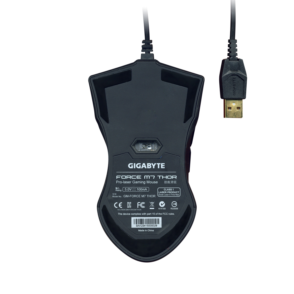 With the reinforced USB cable, GIGABYTE FORCE M7 THOR brings gamers a maximum durability gaming mouse. Gamers will never be hurt by the broken cable after an intense and long-time usage. FORCE M7 THOR is also equipped with gold plated USB connector for optimum signal transfer.