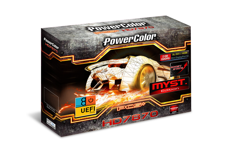 Taipei, Taiwan –November 20th, 2012 -- TUL Corporation, a leading manufacturer of AMD graphic cards, added a new flavor into award-winning PCS+ HD7870 series: the PowerColor PCS+ HD7870 Myst. Edition. As an advanced version of PCS+ series, the latest graphics solution is introduced with evolution GPU design and solid-built “Gold Power Kit” onboard, enabling stable power efficiency even at load.