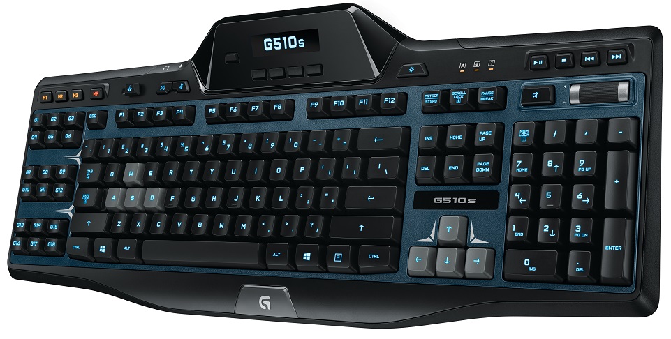To make complex actions simple, the Logitech® G510s Gaming Keyboard provides 18 programmable G-keys, which allow you to configure up to 54 different functions across three different modes, with three macros per key, when you download LGS. In addition to custom-color backlighting it features a backlit GamePanel™ LCD, so not only can you stay informed with real-time game stats, system information and VoIP communication data, you can also develop or add community-created applets to work with your GamePanel. It also has a hydrophobic coating on the palm rest to help keep your hands from sticking, and a double UV coating on the keys for extra durability and long life. The Logitech G510s Gaming Keyboard is expected to be available for a suggested retail price of $119.99.