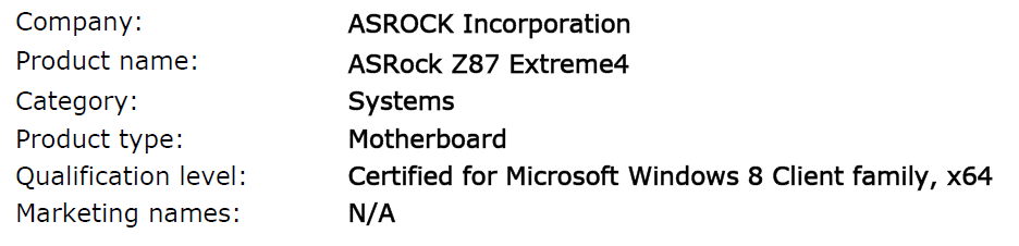 TAIPEI, TAIWAN, April 17, 2013 – Even though nothing much about ASRock’s next generation Intel 8 Series motherboards can be revealed yet, we simply can’t restrain ourselves from spilling out the good news that ASRock’s Z87 Extreme4 is the world’s first Intel 8 Series motherboard to pass Windows® 8 hardware certification. So, yeah, users may be ensured that ASRock’s Z87 Extreme4 will support the latest operating system from Microsoft without any problems, and bear in mind that it’s coming to you real soon!