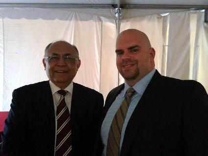 Today is the day of much anticipated July 24th groundbreaking for Fab 2 in Saratoga County, NY! Once constructed, analysts expect Fab 2 to be the world’s most advanced semiconductor foundry. Its construction represents more than three-years of careful planning and collaboration and an investment of roughly $4.2B Our friend Ian McNaughton from AMD is at the groundbreaking ceremony this morning and sent us this picture of himself with GlobalFoundries Chairman - Hector Ruiz. It looks like some gold plated shovels will be in the ground very soon!