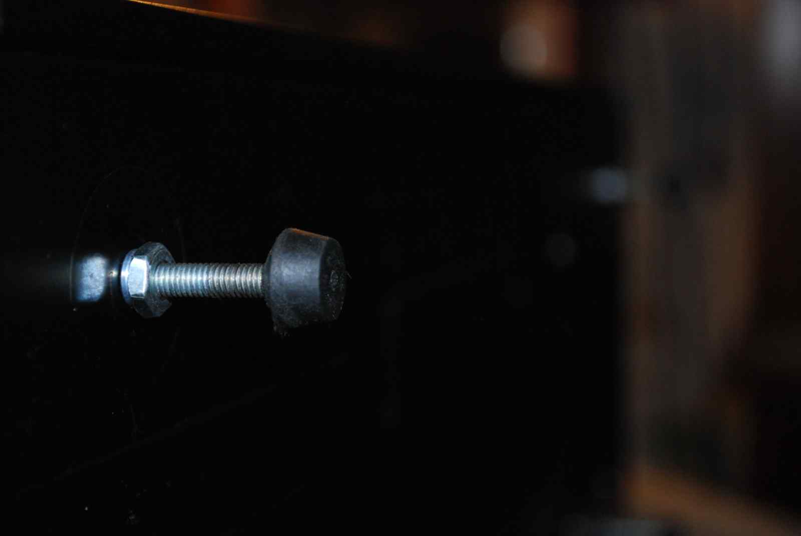 Rubber-covered jig feet. Had to do this cuz the table that the case sits on is recessed, and the case needs a little more altitude.