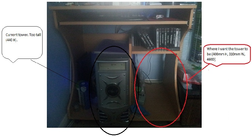 I am wanting to buy a new case. Firstly cause mine is too big for where it is suppose to be and secondly cause I need one with more fan space/better air flow and after having a look on several sites, have found nothing.