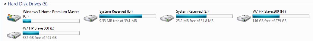 After performing a clean install of Windows 7 and getting my programs and settings the way I like it, I cloned my HD using Acronis that came from Western Digitals website. I cloned it twice because I had two spare drives install on my PC but upon reboot I now show extra drives which are listed as "System Reserved" with just under 30mb in each (hidden files that I can't see?).