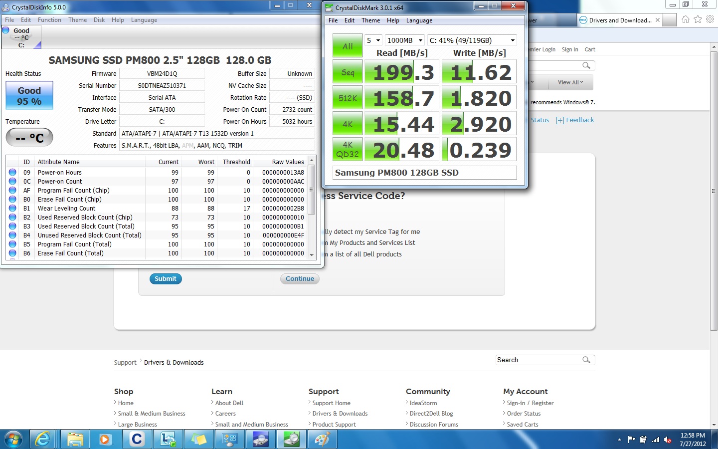 I got a laptop from work, and it has an i5 2.4, 4GB RAM, and was running slower than ell when I got it, so i figured okay, might as well get an 8GB kit of faster RAM, so i proceeded to do all in my power to speed up the machine, and ran CCleaner, and defraggler. at this point I found out that the PC had a SSD because defraggler threw a warning, so i ran crystal disk info to see if it way okay, and showed fine, so I ran CrystalDiskMark to see what transfer speeds I was getting, then I saw the issue: