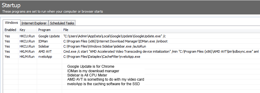 That's the Startup tab for CCleaner, same thing as MSConfig. Only with CCleaner you can delete entries instead of just turning them off.DragonFury wrote:I never had an issue with .net did you go into the Msconfig? Hmm I will have to think on this a bit more. that does not look like msconfig on any windows I messed with.