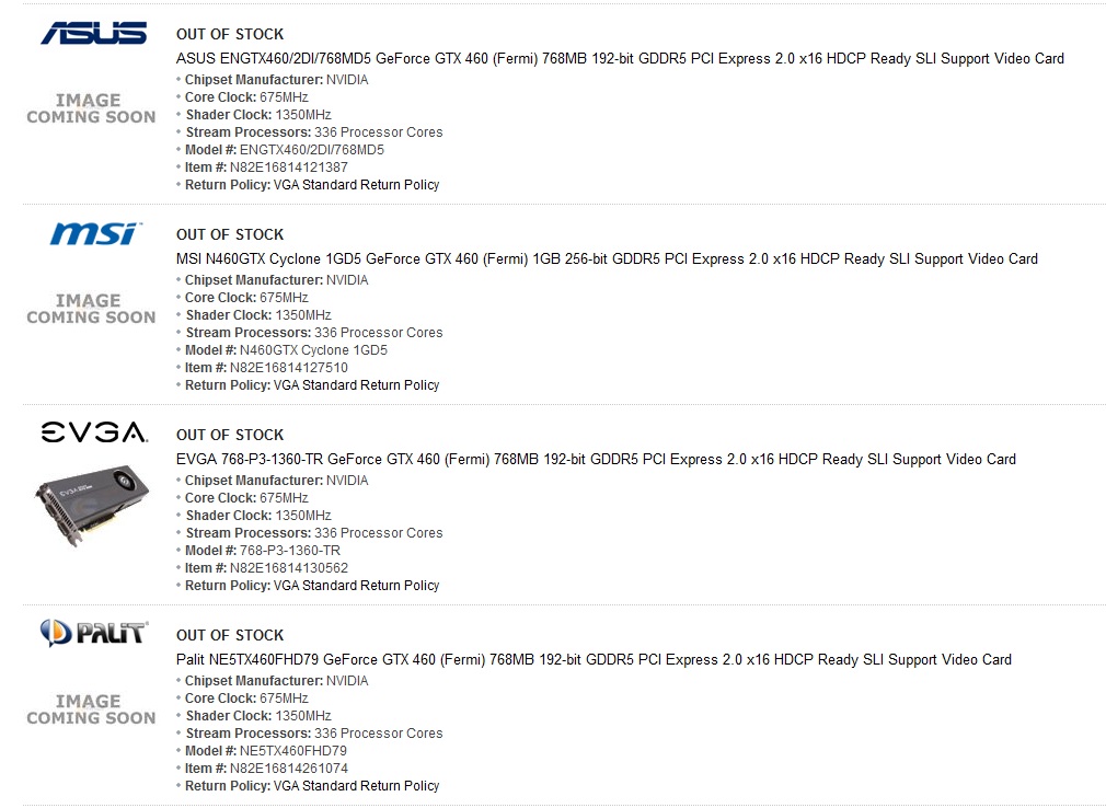 The GTX 460 is already available from Newegg before NDA is lifted. Go figure...