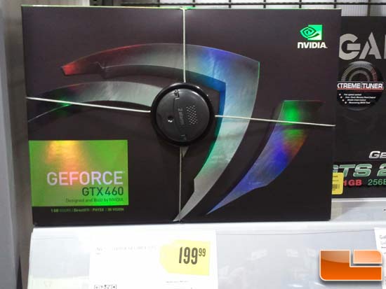 We got word this afternoon that NVIDIA and Best Buy have joined forces and that Best Buy is now directly selling NVIDIA Branded video cards directly to consumers. This is the first time that we have seen NVIDIA branded video cards being sold direct and we went to a few Best Buy stores in St. Louis today and sure enough we spotted the cards sitting on store shelves. We were also shocked to see a $100 price difference between two local stores in the same city. One location had the NVIDIA GeForce GTX 460 being sold at $199, while the other location had them at $299! We couldn't leave the store empty handed, so expect a peak inside the box here shortly.