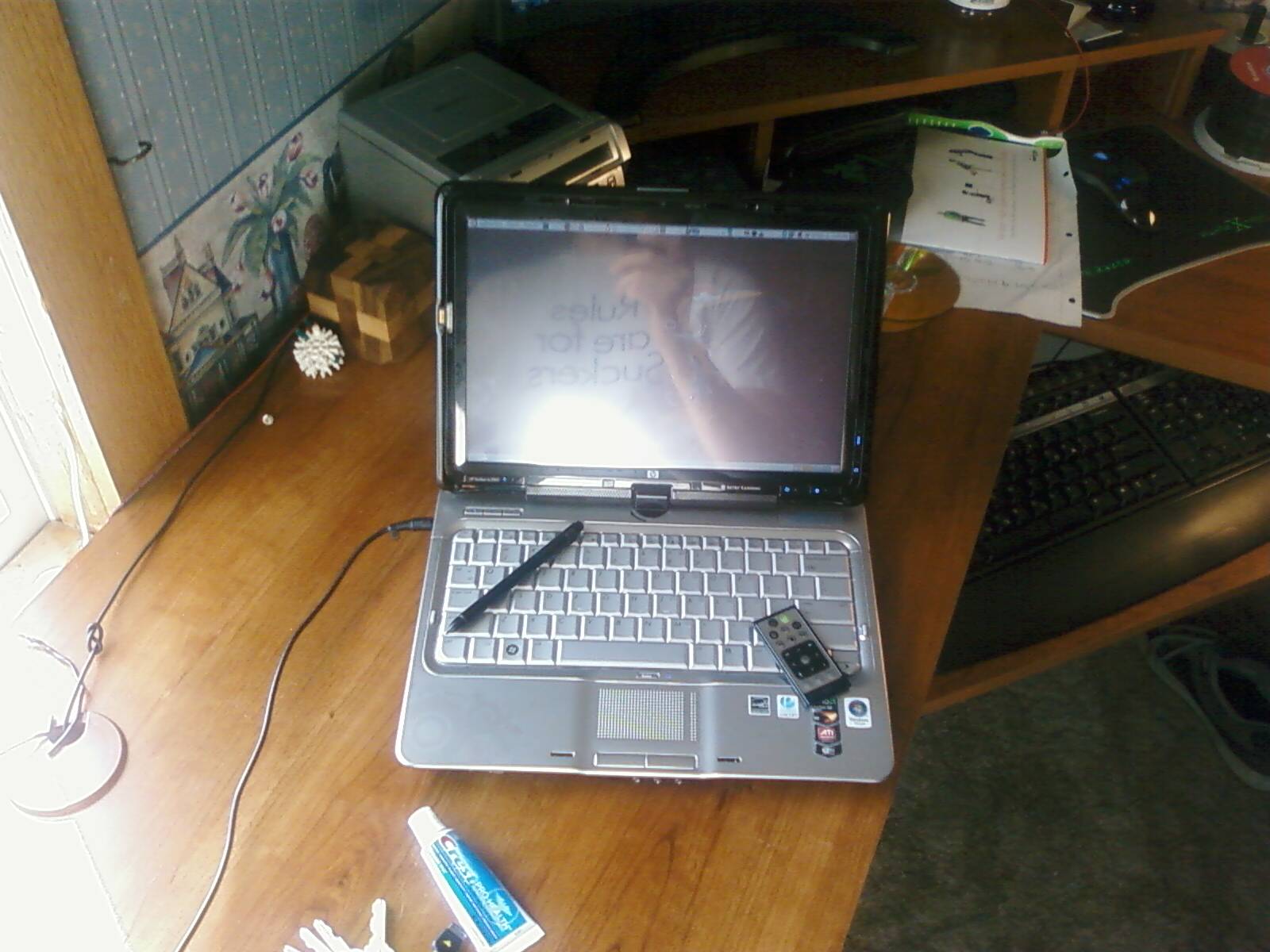 First up we have a screenie of the default desktop with all the bloatware HP has installed. I had also been playing around with the writing recognition and even without training it, it can recognize my sloppy ass handwriting...