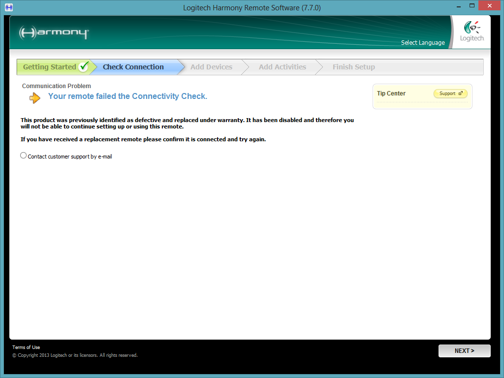 Hope they get that fixed for you. Crazy the error you got was over the replacement of that remote!