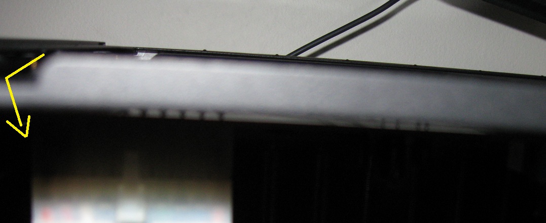 (awkward angle but you get the idea) the arrow is in the same place for both images for reference, so you can see the tray is stamped about 1/4" and the distance from the back of the tray outlines to the case door is actually about 1/8".
