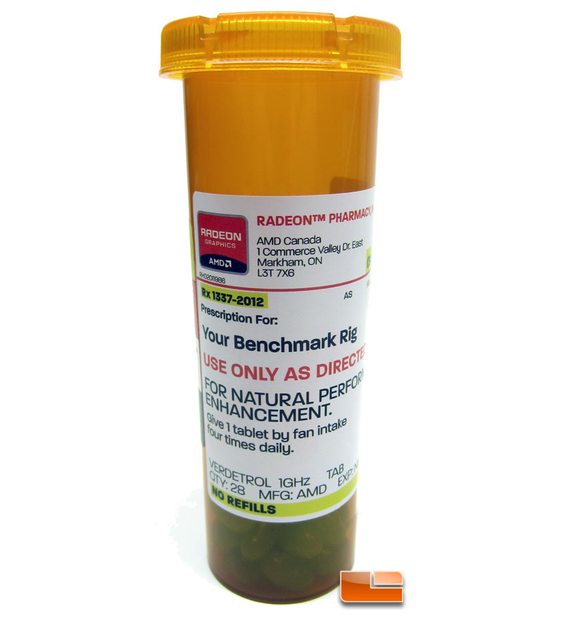 A small overnight UPS package arrived this morning that had what sounded like a medicine bottle inside. I opened it up and it turned out to be a prescription bottle from AMD with 28 doses of Verdetrol 1GHz.