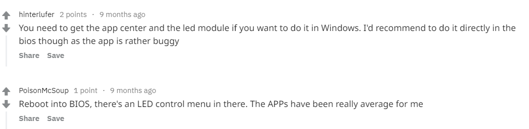 Other than that it seems to be stable with the lights able to be switched, although the app in windows has way more options than bios